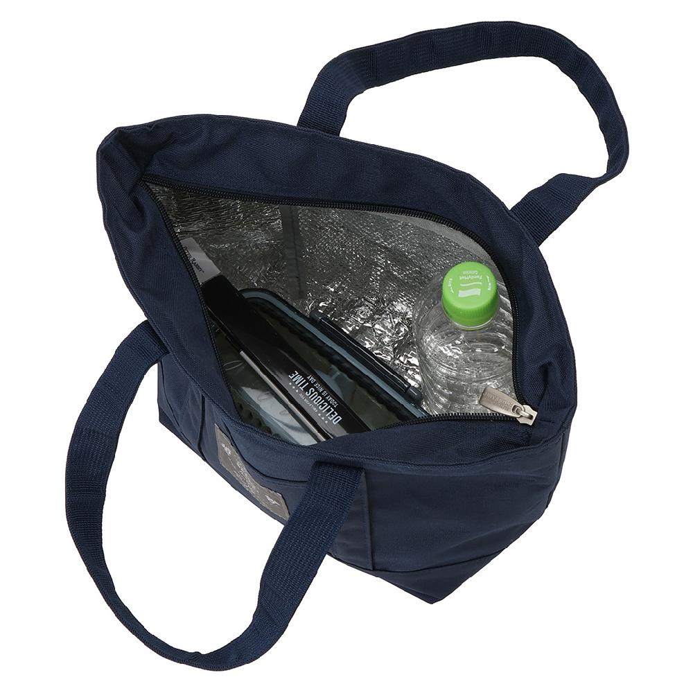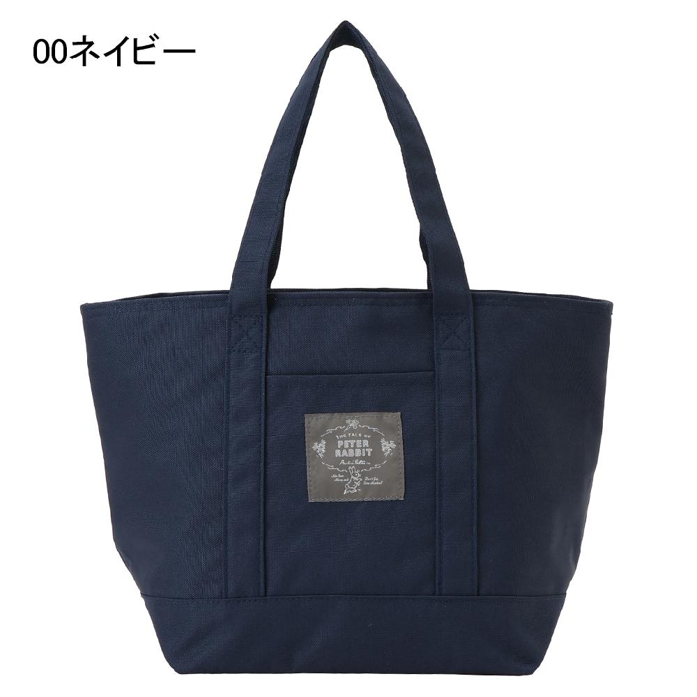 ピーターラビット(TM)のネームが前ポケットについたシンプルなデザインの保温保冷ランチバッグ。