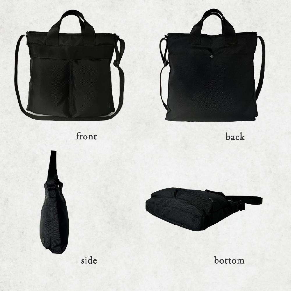 撥水加工が施された中空糸ナイロンを中心にブラックで統一したデザインは あらゆるシーンで幅広くお使いいただけます。