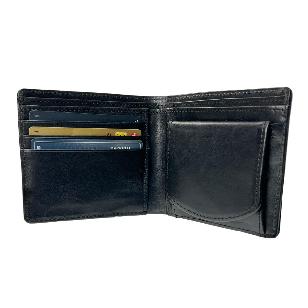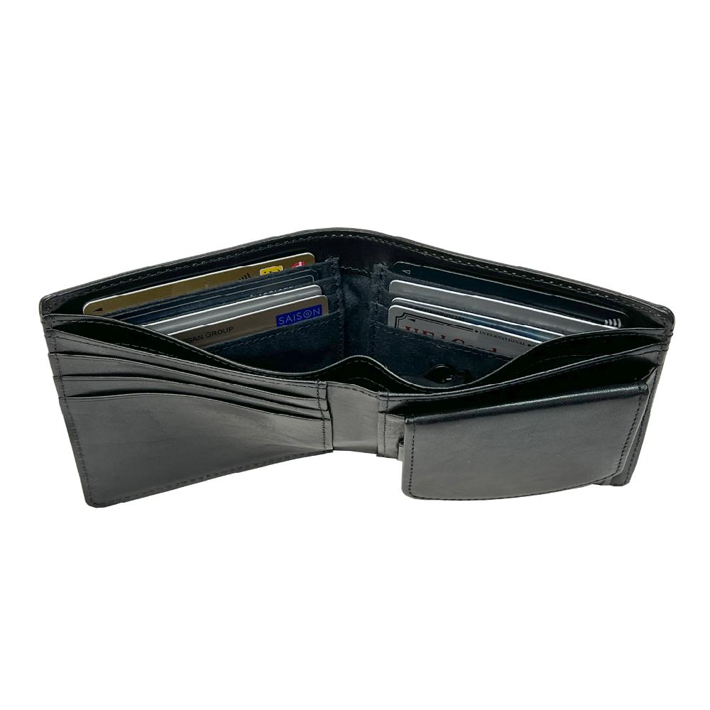 内装は仕切りのある札入れと小銭入れ、同じ方向に開口部があるため支払いもスムーズ。カードポケット11段に加え、フリーポケットが各所に配置されており、スリムなボディながら充分な収納力を備えています。