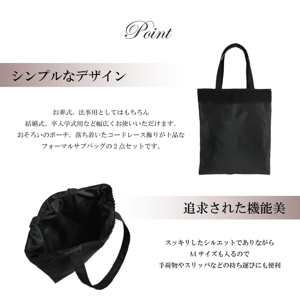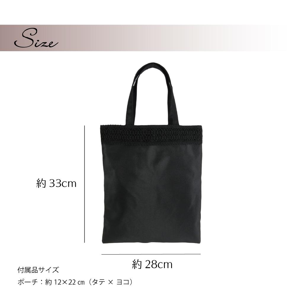 落ち着いたレース飾りがおしゃれな手提げトートと袱紗ポーチのフォーマルサブバッグの2点セットです。